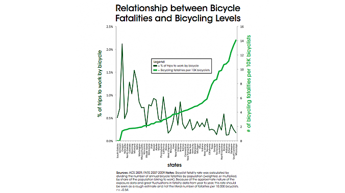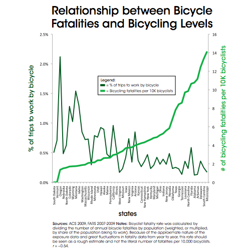 One reality emerges from the data: There are lower rates of cyclist and pedestrian fatalities where there are more people are biking and walking.