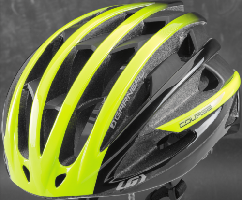 The recall involves Louis Garneau Course Helmets with model number LG1261 printed on the inside of the helmet. "Garneau," "Course" and "LG" are printed on both sides of the recalled bicycle helmets. They were sold in matte black and matte fluo yellow. The manufacturer's date and serial number are printed on a sticker inside the helmet.