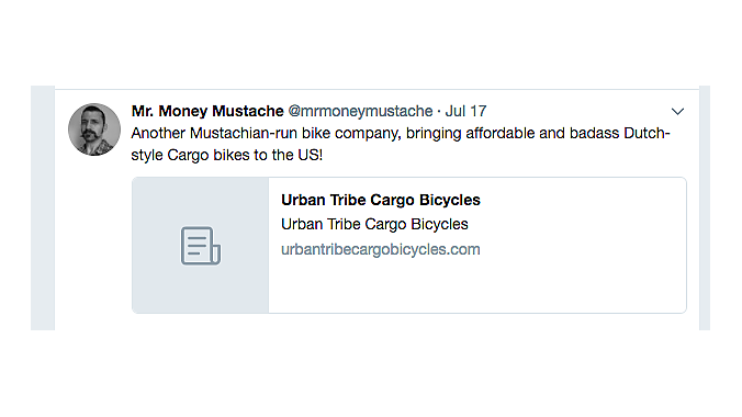 For Powell, who now has two young children, cargo bikes suit his family's Mr. Money Mustache-inspired life. And the e-commerce business, which allows flexibility and autonomy, also fits the philosophy. Even the company name was inspired by a 2015 Mr. Money Mustache blog posting, Get Rich With Your Own Urban Tribe.