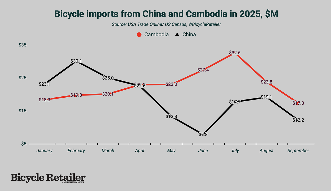 Through the first three quarters, the U.S. imported 6.3 million bikes, down from 8.3 million over the same period last year. The import value was $667 million, down from $792 million.
